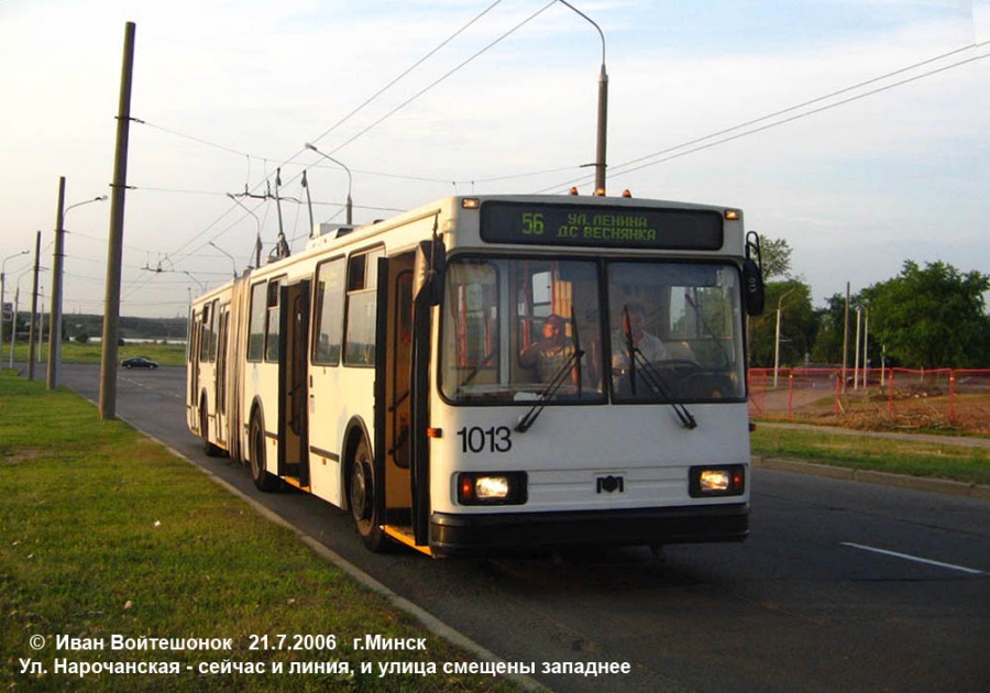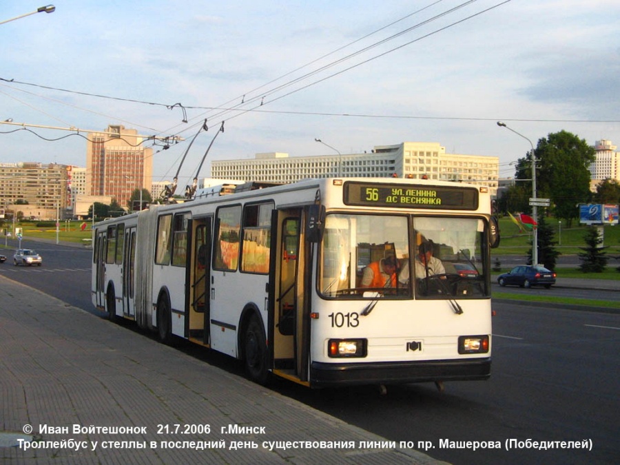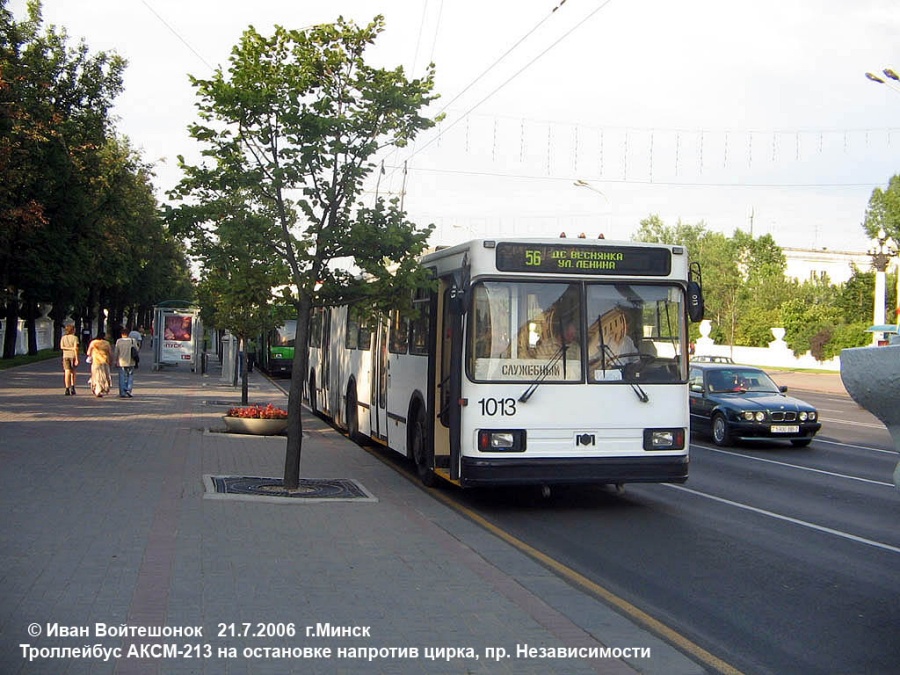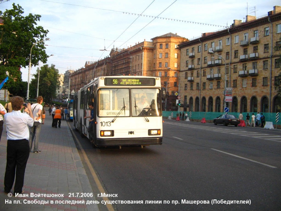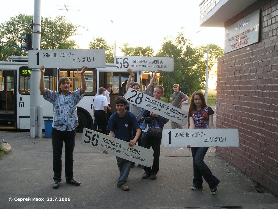 В июле 2006-го года было принято решение снять троллейбусную инфраструктуру с проспекта Победителей. Транспортные энтузиасты города арендовали АКСМ-213, чтобы в последний раз прокатиться по 56-му маршруту от Ленина до Веснянки. Подача машины из депо, проспект у цирка: