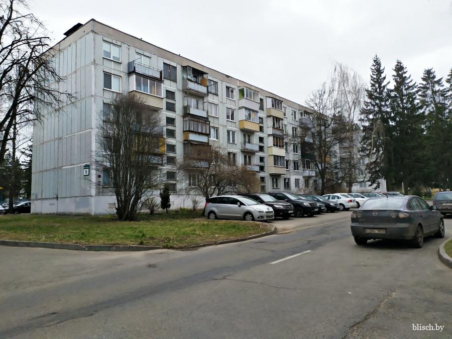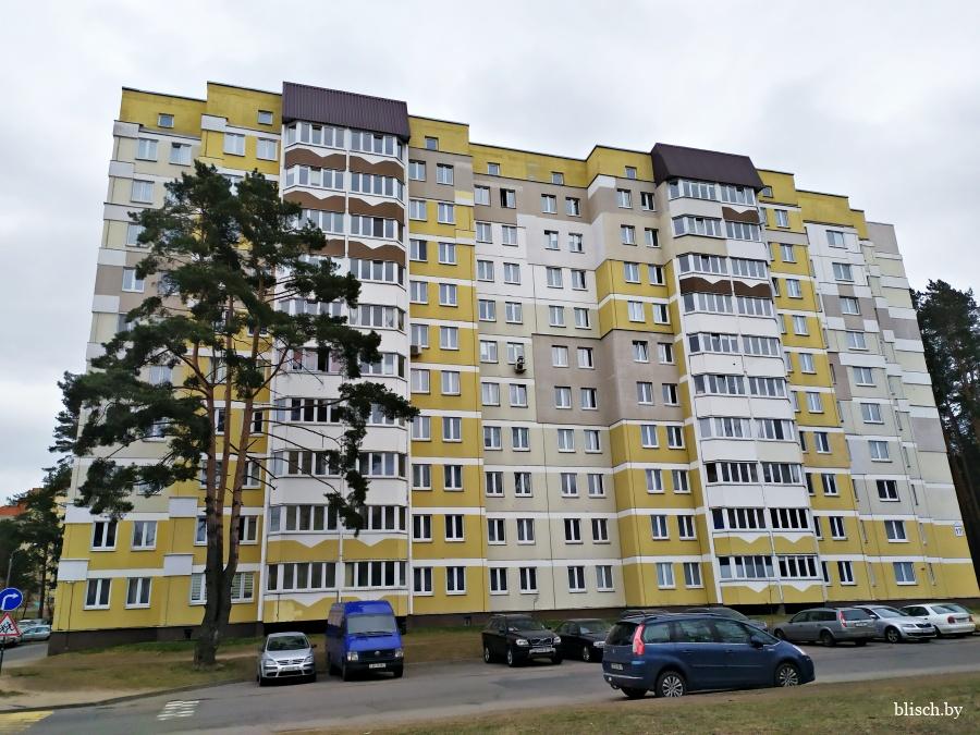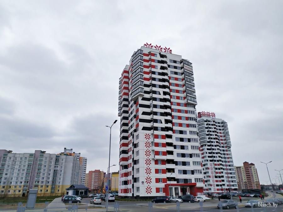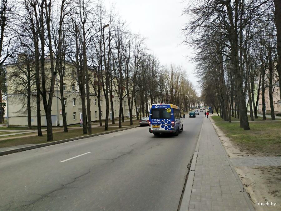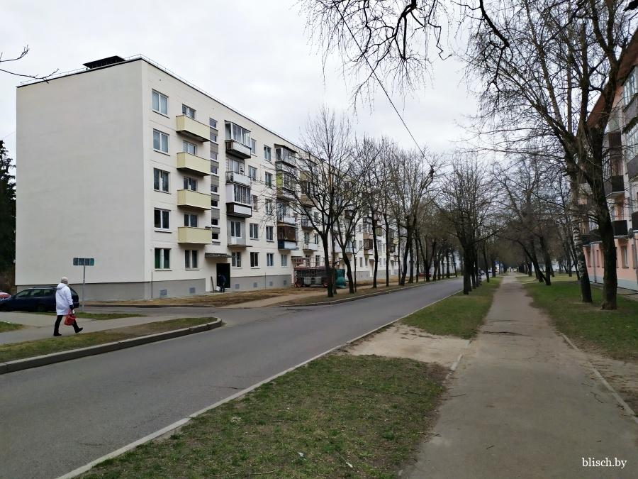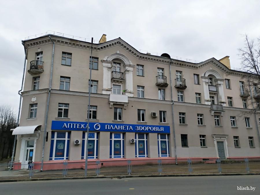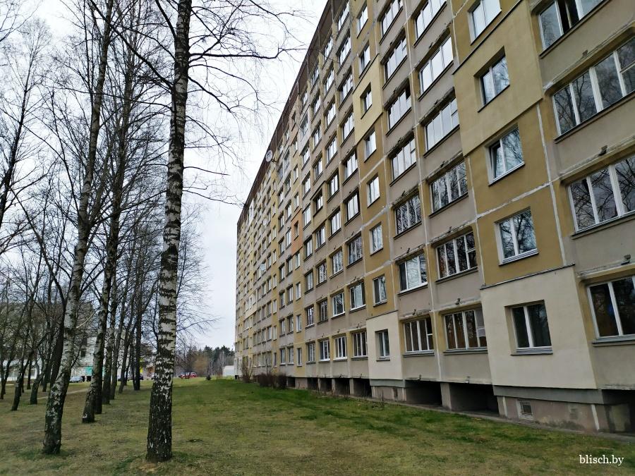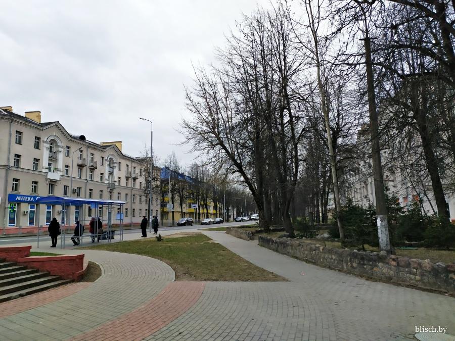 Высотный акцент — силикатная девятиэтажка по индивидуальному проекту. Автобус, к слову, катится по Почтовой улице, одной из редчайших в Минске улиц с односторонним движением.
