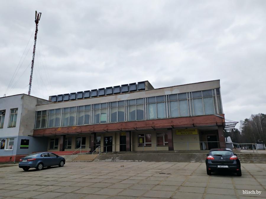 Наконец, центральный объект площади, дом офицеров. Учитывая, что архитектурно он уже из 70-х или даже ранних 80-х, до этого городок обходился каким-то другим зданием либо вовсе без него. Дом офицеров пребывает в тяжелом состоянии и свою основную функцию променял на сдачу помещений в аренду. На первом этаже работает продовольственный магазин, на втором оборудована студия ОНТ, где проходят съемки различных ток-шоу.