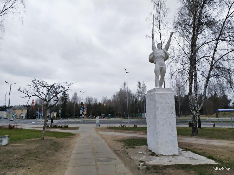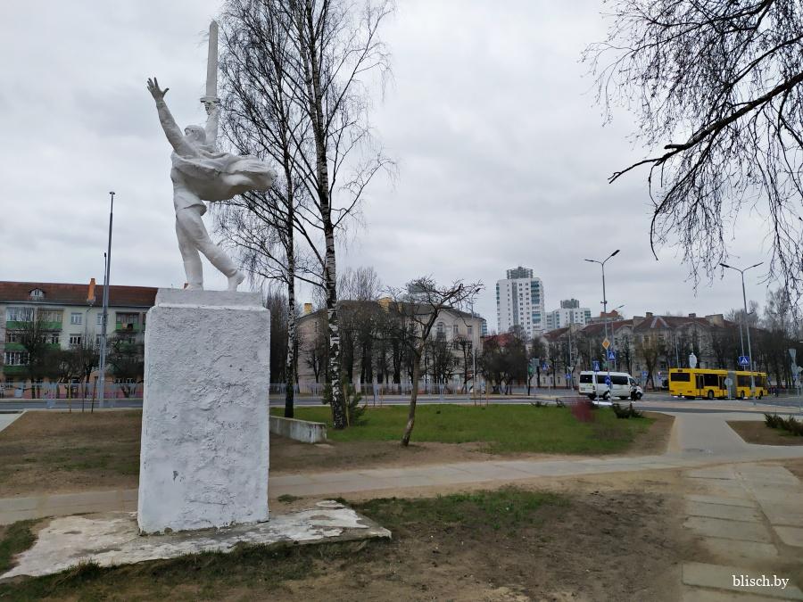 Есть на площади и еще одна скульптура, по стилистике отсылающая к послевоенным годам. Никакой информации о ней я не нашел. Кто знает? Добавлю в материал.