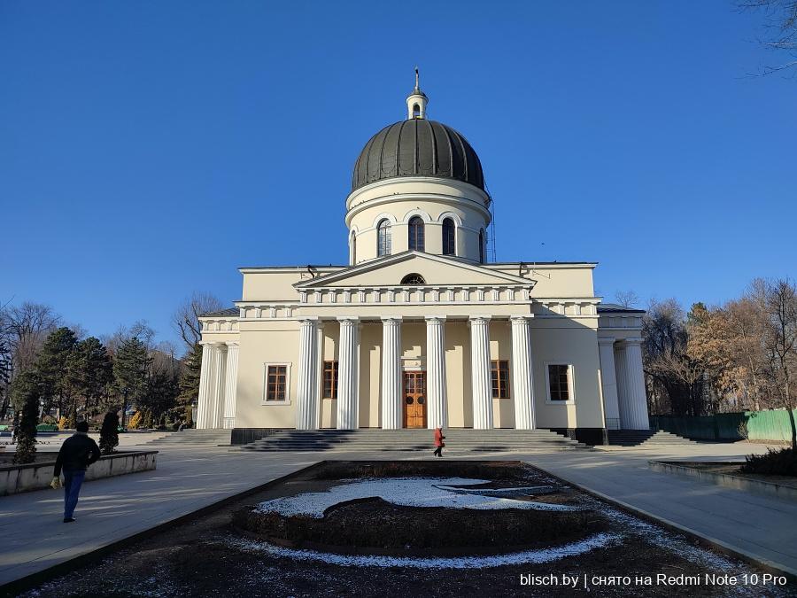 Я же пришел в зеленое сердце молдовской столицы, в сквер Кафедрального собора, в самый центр города. Собственно, в нем и стоит основной храм страны, поставленный здесь в XIX веке по классической моде того времени. Молдаване, к слову, поголовно православные христиане, другие конфессии практически не представлены.