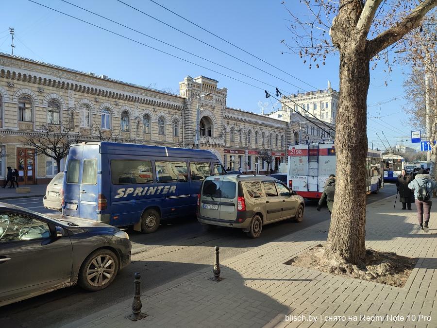 Количество тачек в кадре поразительное, да. Кишинев стоит в пробках буквально всюду, ездить на общественном транспорте крайне сложно, не спасает и такси. Неожиданная проблема для краеведов — фоткать город так, чтобы тачки не загрязняли картинку.
