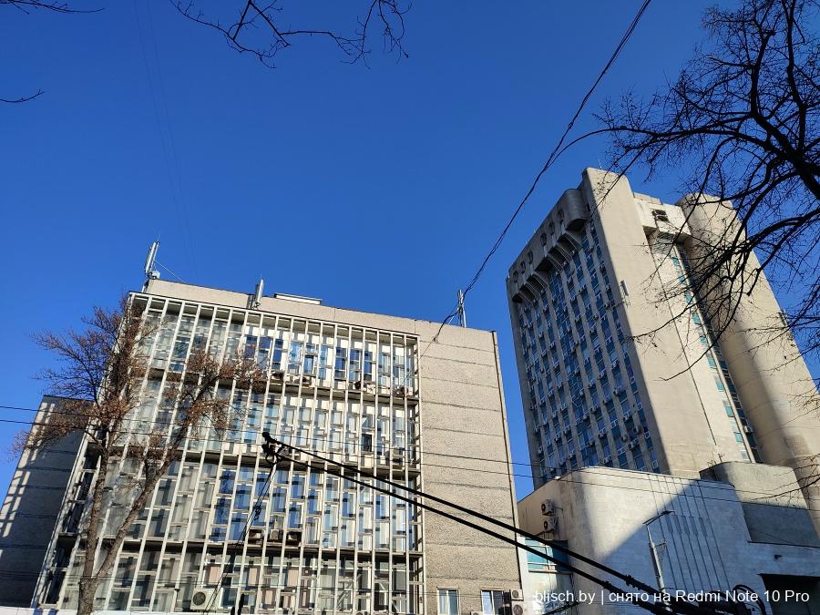 Я приблизился к следующей площади, отсекающей официальное торжественное центральное ядро от спальных массивов. Есть и другой центр — низкоэтажный, типично южный для имперских времен, но я решил без него, только заночевал там в гостинице. В высотке центральный офис «Молдтелекома» (типа нашего «Белтелекома»). Обратите внимание на обрешетку фасадов — это естественный рассеиватель солнечного света, явный признак очень жаркого города.