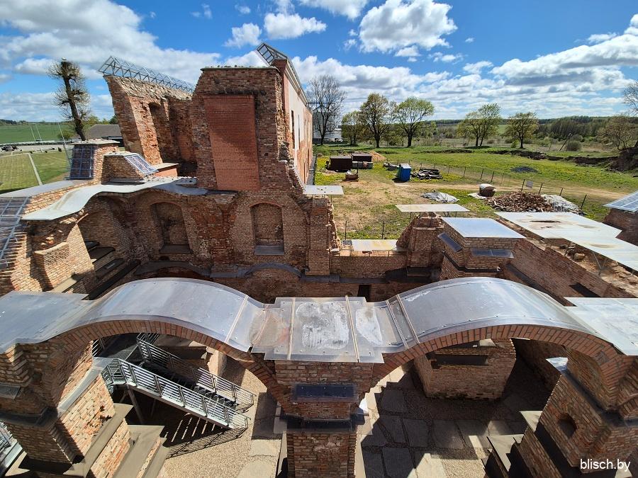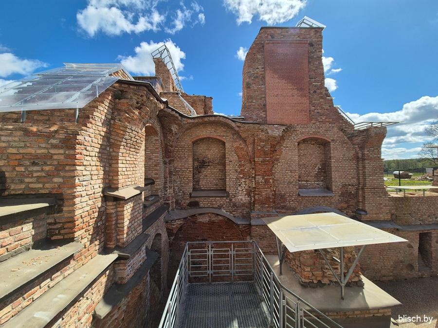 Оголенная кладка Гольшанского замка прикрыта плексигласом для защиты от осадков: