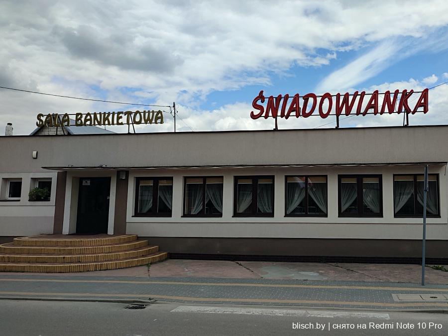 Банкетный зал и кафе «Снядовянка». Я уже упоминал, что в Польше развита культура подобных помещений в небольших населенных пунктах — в них свадьбы, поминки и юбилеи, собрания трудящихся. В городках будут еще и гостиничные номера, и развлечения. В Беларуси подобный формат общественных заведений практически неизвестен, я знаю буквально несколько примеров на северо-западе страны.