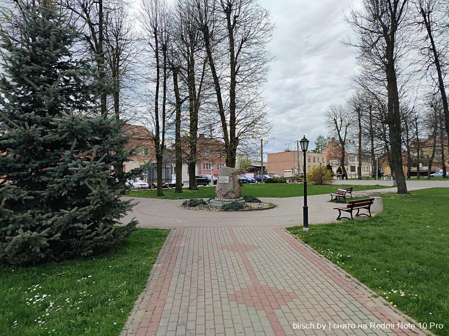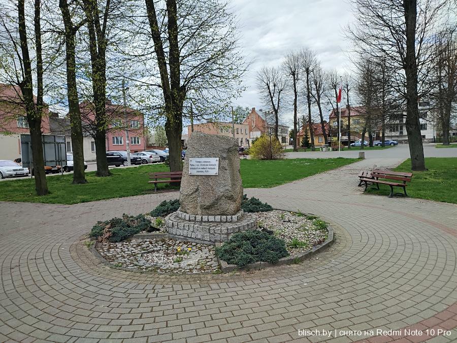 Рыночная площадь превращена в сквер, в центре мемориал в честь погибших бойцов осенней кампании 1939-го года: