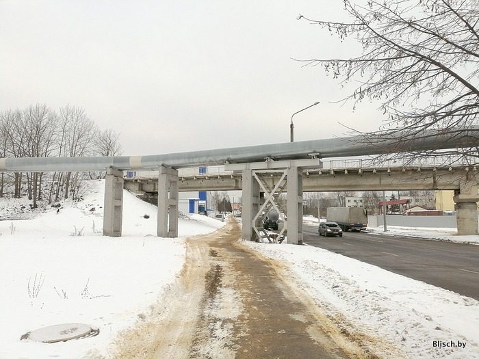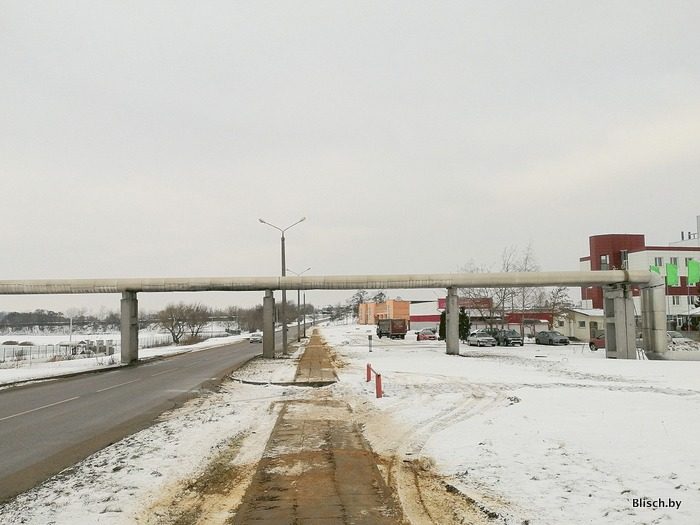 С моста открывается душеспасительный вид на бетонную заброшку. Гугл утверждает, что принадлежит она некоему СООО «Белпромметиз», а официальный сайт проволочной компании в свою очередь обещает ввод в строй метизного центра в 2019-м году. Дай бог!