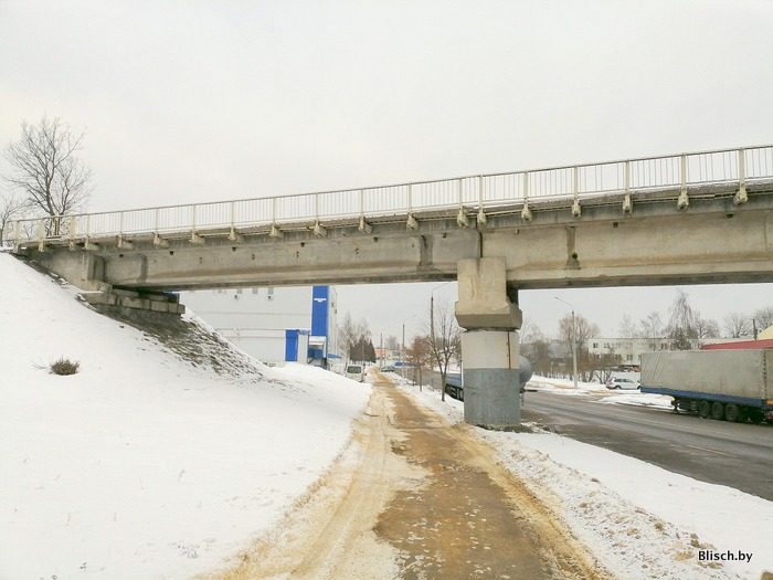 В промзону я попал через пешеходный мост над станцией Шабаны, о которой рассказывал на днях. Мост перекрывает не только пути, но и параллельную им улицу — она называется Инженерной.