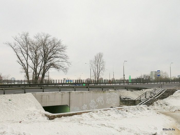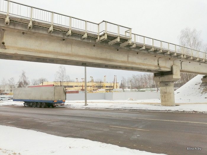 Далее переулок пересекает по мосту железная дорога. Интересная штука! Начало она берет от станции Шабаны, затем пересекает промышленную зону, завод колесных тягачей и проходит через весь МАЗ, оканчиваясь у Партизанского проспекта. Конечную ее станцию я показывал в этом посте. Но даже на моей памяти когда-то железка пересекала проспект и уходила дальше к ТЭЦ-3, а после вливалась в магистраль Минск — Орша. Другими словами, немалую часть города можно было в теории пересечь на тепловозе по рельсам.