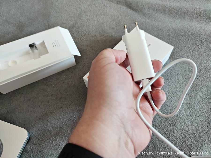 Называется Mi 65W Fast Charger, то есть уже в названии обещается мощность до 65 Ватт (доступна только для ноутбуков). Комплектность простейшая: собственно, «розетка» и провод Type C/Type C. Наверное, привычные USB 2.0/Type C физически не могут обеспечить приемлемую скорость.