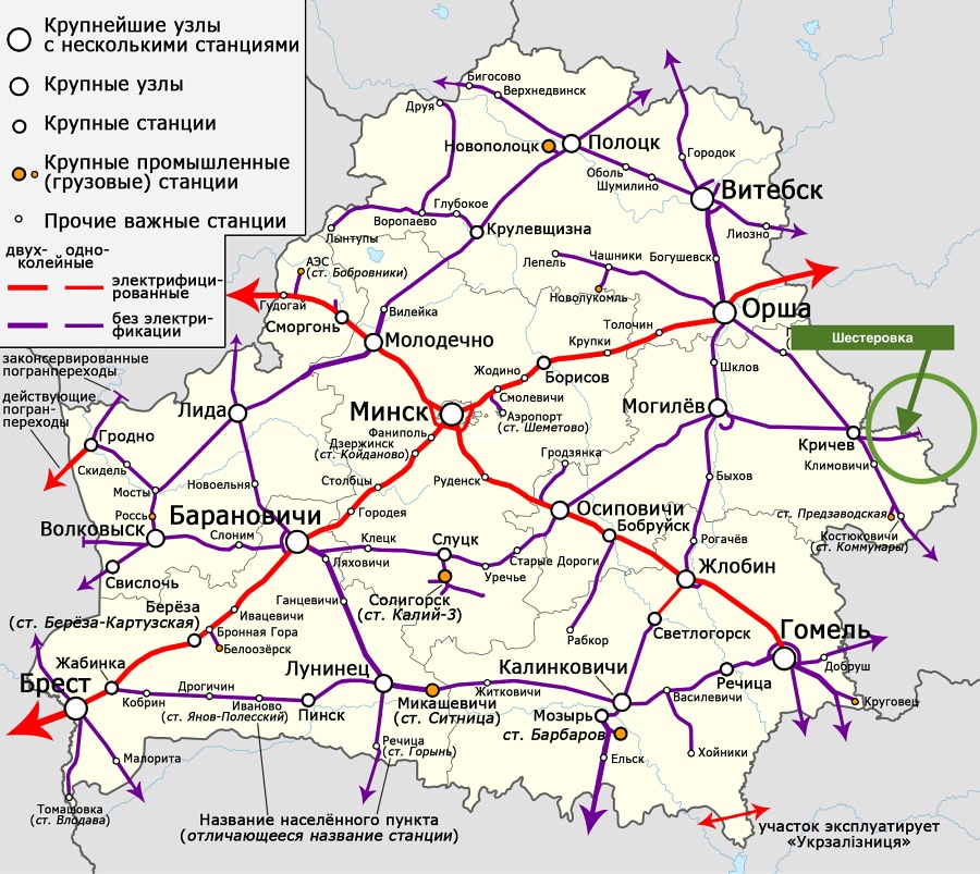 Прозорливый читатель может догадаться, что когда-то Шестеровка не была конечной станцией. Это действительно так. Линия продолжалась в российский Рославль и оставалась действующей еще до начала 2000-х годов. В лучшие времена по ветке курсировало четыре пары дизель-поездов, но после сокращения пассажиропотока и финансирования со стороны Рославля движение было прекращено.