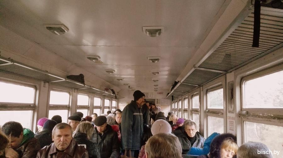 В салоне оказываются почти все места заняты, а после станции Луполово под Могилевом и вовсе люди вынуждены стоять в проходах и тамбуре. Давненько такого в Минске не наблюдал.