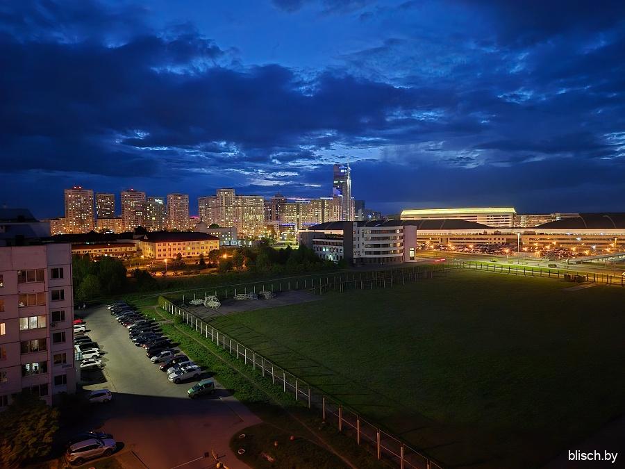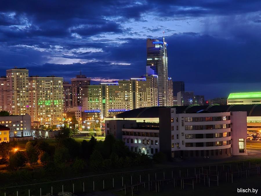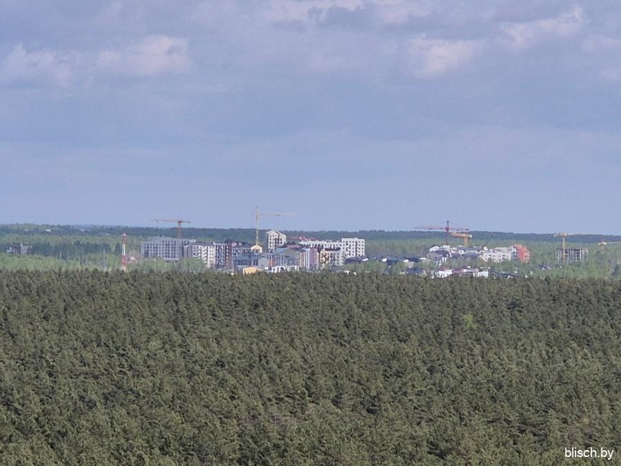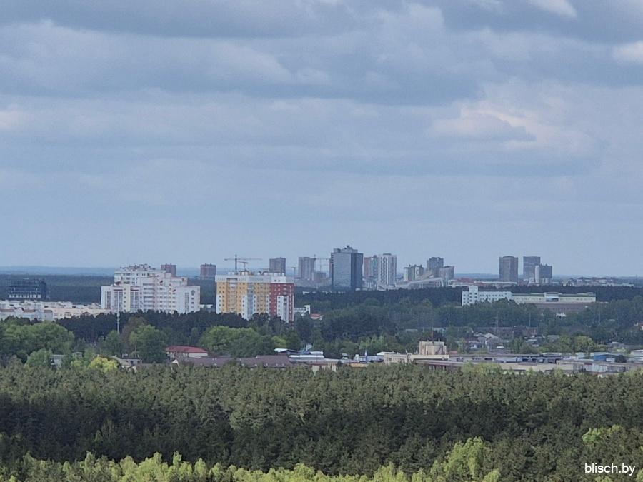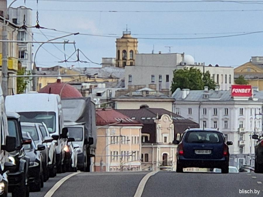 Зум 20х (я стою у выхода из станции метро «Фрунзенская», смотрю в сторону проспекта Независимости — вдалеке застройка Немиги и башенка КГБ):