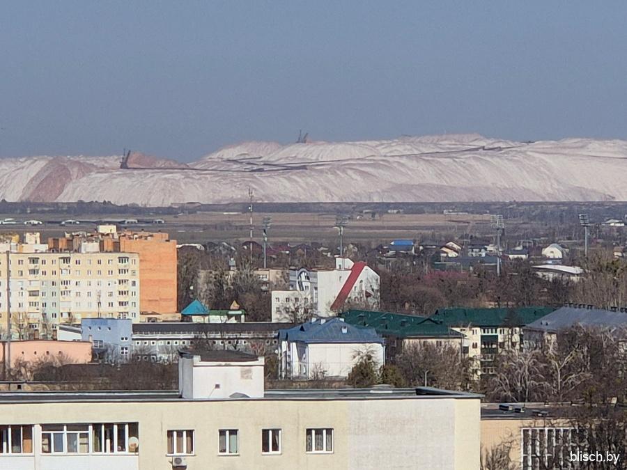 Город относительно рудников расположен близко, а первый, то есть старейший, и вовсе примыкает к границе населенного пункта — к нему ведет улица Ленинского Комсомола, с которого Солигорск начинался. В общем, с высоких точек солеотвалы буквально сливаются с застройкой: