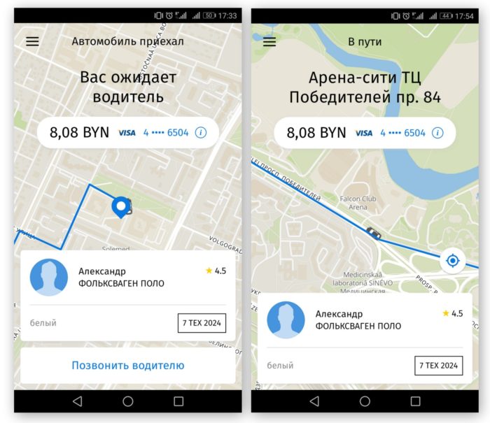 Опять же, процесс подачи машины знаком любому, кто пользуется подобными приложениями. Можно связаться с водителем для уточнения местонахождения авто, можно отслеживать передвижение такси во время поездки (полезно, когда вызвал машину для кого-то другого).