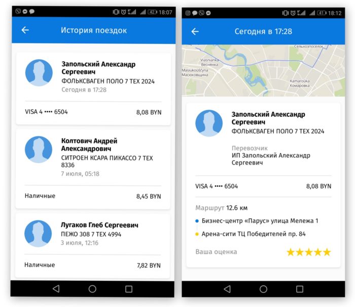 Поездки сохраняются в историю. С интересом узнал, что последний раз я ездил на 135 7 июля в 5:18 утра :)