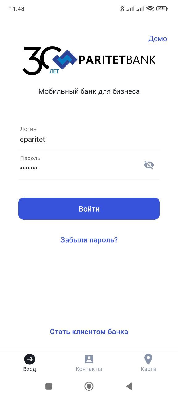 Прилага называется eParitet и устанавливается из Google Play, App Store и Huawei App Gallery. Здесь ссылка на лендинг — переходите по ней. Кстати, наличие приложения в официальных магазинах операционных систем точно указывает на то, что банк не под санкциями.