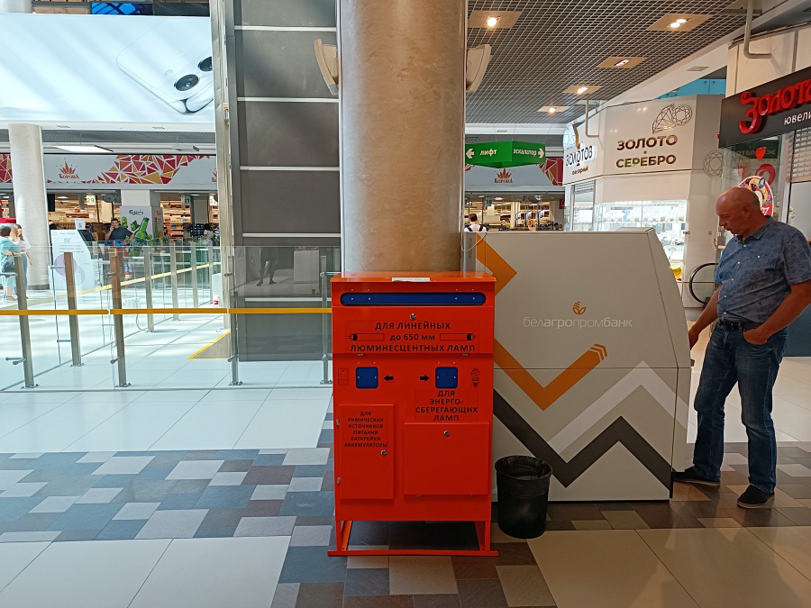 Тетушка на инфоцентре указала его расположение, но по месту меня ждало разочарование: выкинуть в него можно только батарейки/аккумуляторы и энергосберегающие лампы (еще оказывается и лампы надо как-то отдельно сдавать, не забыть бы).