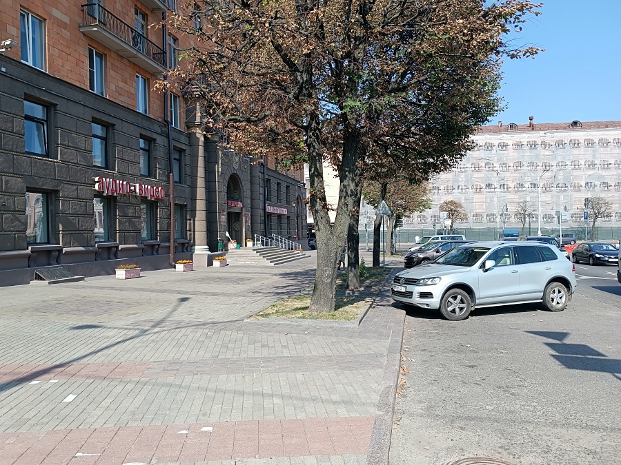 Ладно, поискал глазами две точки с обещанными контейнерами, чтобы увеличить свои шансы на утилизацию телефона :) Карта предложила ТЦ «Кiрмаш» на Хоружей и «Электросилу» на Коласа. Пешая, короче, досягаемость. «Кiрмаш» сразу оказался мимо, а вот в «Электросиле» наконец удалось вытянуть счастливый билет!